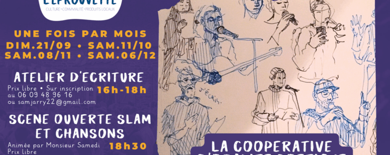 SAM. 8 NOV. 16h-18h / 18h30-20h30 • Atelier d’écriture / Scène ouverte Slam et Chansons