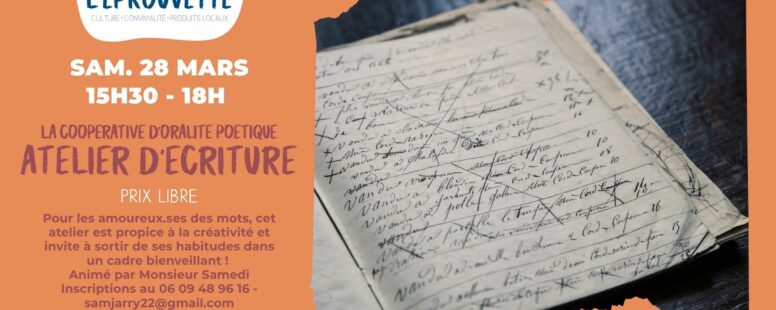 SAM. 28 MARS. · 15h30-18h · Atelier d’écriture