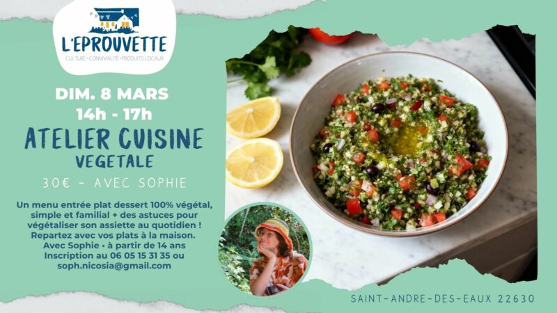 Un menu entrée plat dessert 100% végétal simple et familial + des astuces pour végétaliser son assiette au quotidien ! Repartez avec vos plats à la maison.