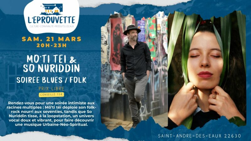 Rendez-vous pour une soirée intimiste aux racines multiples : Mô’titëi déploie son folk-rock nourri aux seventies, tandis que So Nuriddin tisse, à la loopstation, un univers vocal doux et vibrant, pour faire découvrir une musique Urbaine-Néo-Spiritual.
